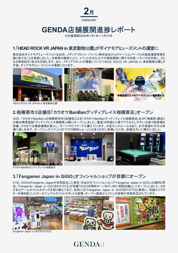 株式会社GENDA(本社:東京都港区、代表取締役社長CEO:片岡 尚、以下「当社」)は、当社グループの店舗展開、売上に関して、毎月進捗レポートを公開中です。