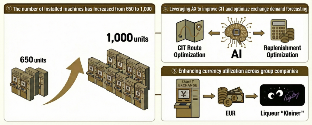 AI initiatives led by our BizDev team have improved investment efficiency, resulting in a number of installations that exceeded our initial targets. We have also reduced reliance on individual expertise by automating cash-in-transit (“CIT”) operations and actively promoting personnel exchanges across group companies. These efforts have established a robust operational foundation capable of supporting large-scale expansion. The accelerated rollout of machines at major convenience store chains after joining GENDA has also been a key contributor to the overall growth in installations.